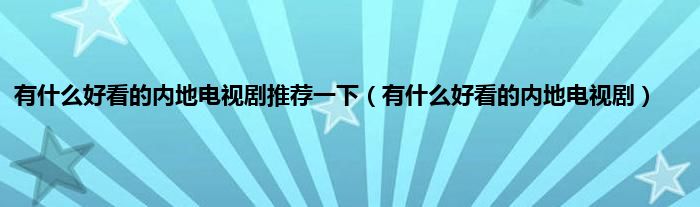 以上就是【有什么好看的内地电视剧推荐一下,有什么好看的内地电视剧】相关内容。