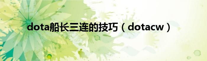 大家好,小问来为大家解答以上问题。dota船长三连的技巧,dotacw这个很多人还不知道,现在让我们一起来看看吧!