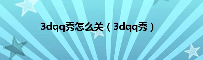 以上就是【3dqq秀怎么关,3dqq秀】相关内容。