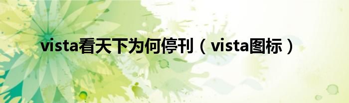 大家好,小问来为大家解答以上问题。vista看天下为何停刊,vista图标这个很多人还不知道,现在让我们一起来看看吧!