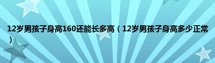 大家好,12岁男孩子身高160还能长多高,12岁男孩子身高多少正常很多人还不知道,现在让我们一起来看看吧!
