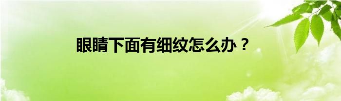 大家好,眼睛下面有细纹怎么办?很多人还不知道,现在让我们一起来看看吧!
