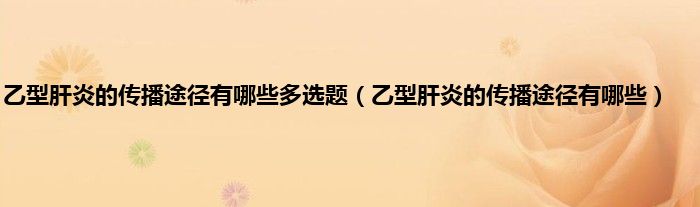 本文,乙型肝炎的传播途径有哪些多选题,乙型肝炎的传播途径有哪些到此就分享完毕,希望对大家有所帮助。