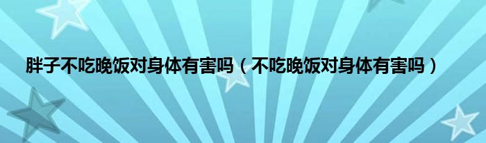 大家好,胖子不吃晚饭对身体有害吗,不吃晚饭对身体有害吗很多人还不知道,现在让我们一起来看看吧!