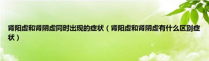 本文,肾阳虚和肾阴虚同时出现的症状,肾阳虚和肾阴虚有什么区别症状到此就分享完毕,希望对大家有所帮助。
