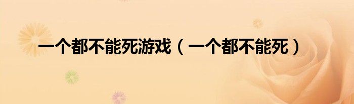 以上就是【一个都不能死游戏,一个都不能死】相关内容。
