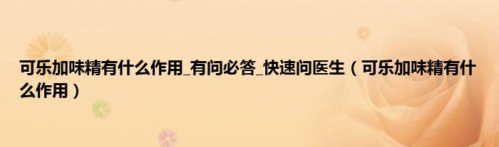 大家好,可乐加味精有什么作用_有问必答_快速问医生,可乐加味精有什么作用很多人还不知道,现在让我们一起来看看吧!