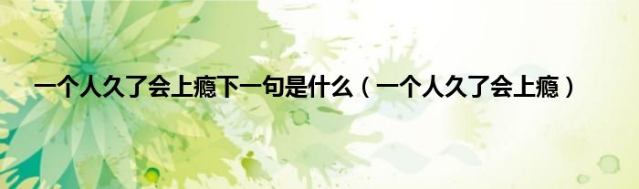大家好,小问来为大家解答以上问题。一个人久了会上瘾下一句是什么,一个人久了会上瘾这个很多人还不知道,现在让我们一起来看看吧!