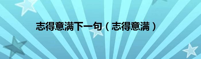 大家好,小问来为大家解答以上问题。志得意满下一句,志得意满这个很多人还不知道,现在让我们一起来看看吧!