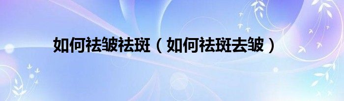 大家好,如何祛皱祛斑,如何祛斑去皱很多人还不知道,现在让我们一起来看看吧!