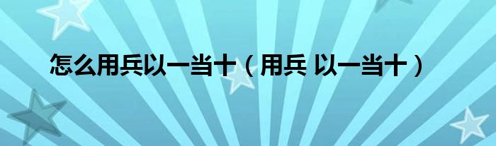 以上就是【怎么用兵以一当十,用兵 以一当十】相关内容。