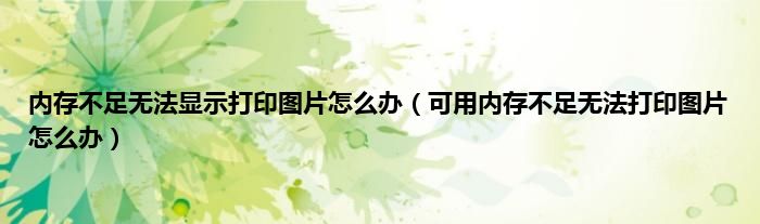 以上就是【内存不足无法显示打印图片怎么办,可用内存不足无法打印图片怎么办】相关内容。
