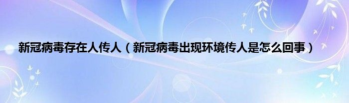 大家好,新冠病毒存在人传人,新冠病毒出现环境传人是怎么回事很多人还不知道,现在让我们一起来看看吧!