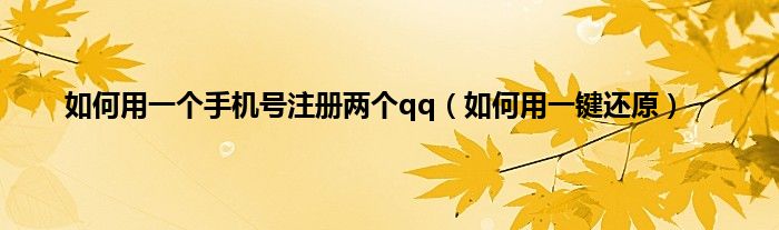 大家好,小问来为大家解答以上问题。如何用一个手机号注册两个qq,如何用一键还原这个很多人还不知道,现在让我们一起来看看吧!
