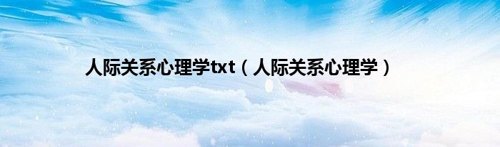 大家好,小问来为大家解答以上问题。人际关系心理学txt,人际关系心理学这个很多人还不知道,现在让我们一起来看看吧!