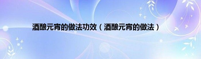 以上就是【酒酿元宵的做法功效,酒酿元宵的做法】相关内容。
