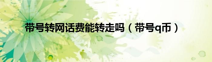 带号转网话费能转走吗(带号q币)