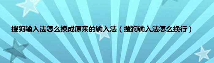 以上就是【搜狗输入法怎么换成原来的输入法,搜狗输入法怎么换行】相关内容。