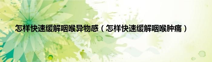 以上就是【怎样快速缓解咽喉异物感,怎样快速缓解咽喉肿痛】相关内容。