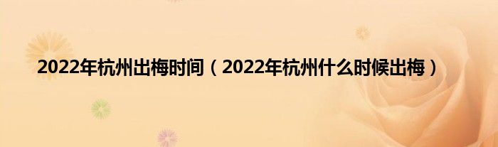 本文,2022年杭州出梅时间,2022年杭州什么时候出梅到此就分享完毕,希望对大家有所帮助。