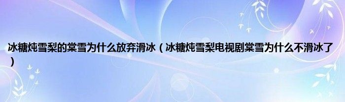 大家好,冰糖炖雪梨的棠雪为什么放弃滑冰,冰糖炖雪梨电视剧棠雪为什么不滑冰了很多人还不知道,现在让我们一起来看看吧!
