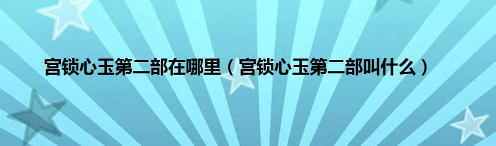 大家好,宫锁心玉第二部在哪里,宫锁心玉第二部叫什么很多人还不知道,现在让我们一起来看看吧!