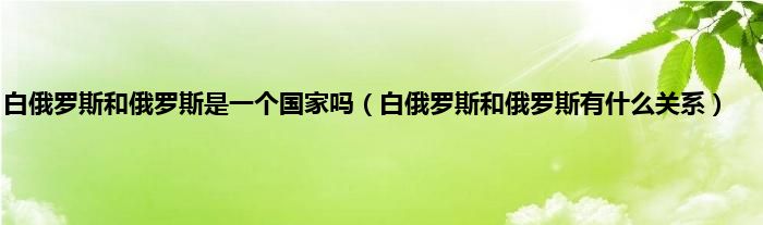 大家好,白俄罗斯和俄罗斯是一个国家吗,白俄罗斯和俄罗斯有什么关系很多人还不知道,现在让我们一起来看看吧!