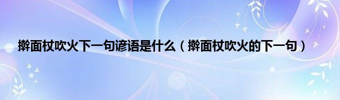 本文,擀面杖吹火下一句谚语是什么,擀面杖吹火的下一句到此就分享完毕,希望对大家有所帮助。