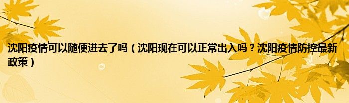 本文,沈阳疫情可以随便进去了吗,沈阳现在可以正常出入吗?沈阳疫情防控最新政策到此就分享完毕,希望对大家有所帮助。