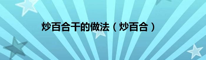 大家好,小问来为大家解答以上问题。炒百合干的做法,炒百合这个很多人还不知道,现在让我们一起来看看吧!