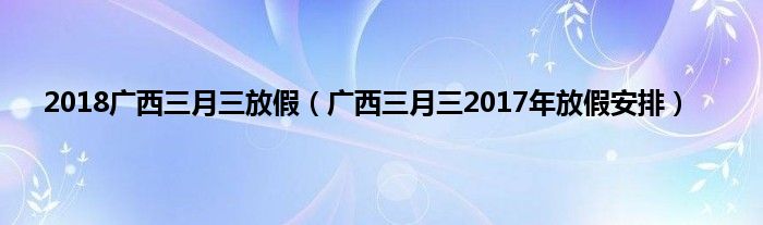 广西2017年3月3日放假时间为3月30日(星期四)、31日(星期五),即农历三月初三、初四。为给我区“壮族三月三”营造良好的节日氛围,本自治区放假时间为4月1日(周六),“壮族三月三”及清明节放假时间为3月30日至4月4日。这意味着广西人民将可以享受为期六天的假期。