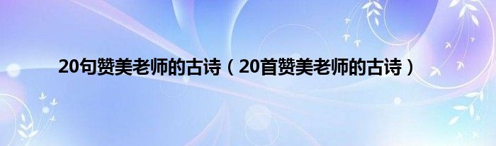 本文,20句赞美老师的古诗,20首赞美老师的古诗到此就分享完毕,希望对大家有所帮助。