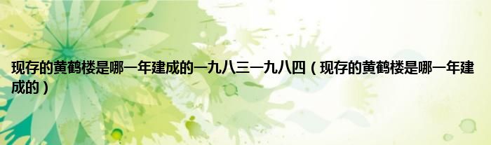 本文,现存的黄鹤楼是哪一年建成的一九八三一九八四,现存的黄鹤楼是哪一年建成的到此就分享完毕,希望对大家有所帮助。