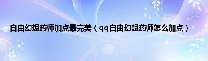 大家好,小问来为大家解答以上问题。自由幻想药师加点最完美,qq自由幻想药师怎么加点这个很多人还不知道,现在让我们一起来看看吧!